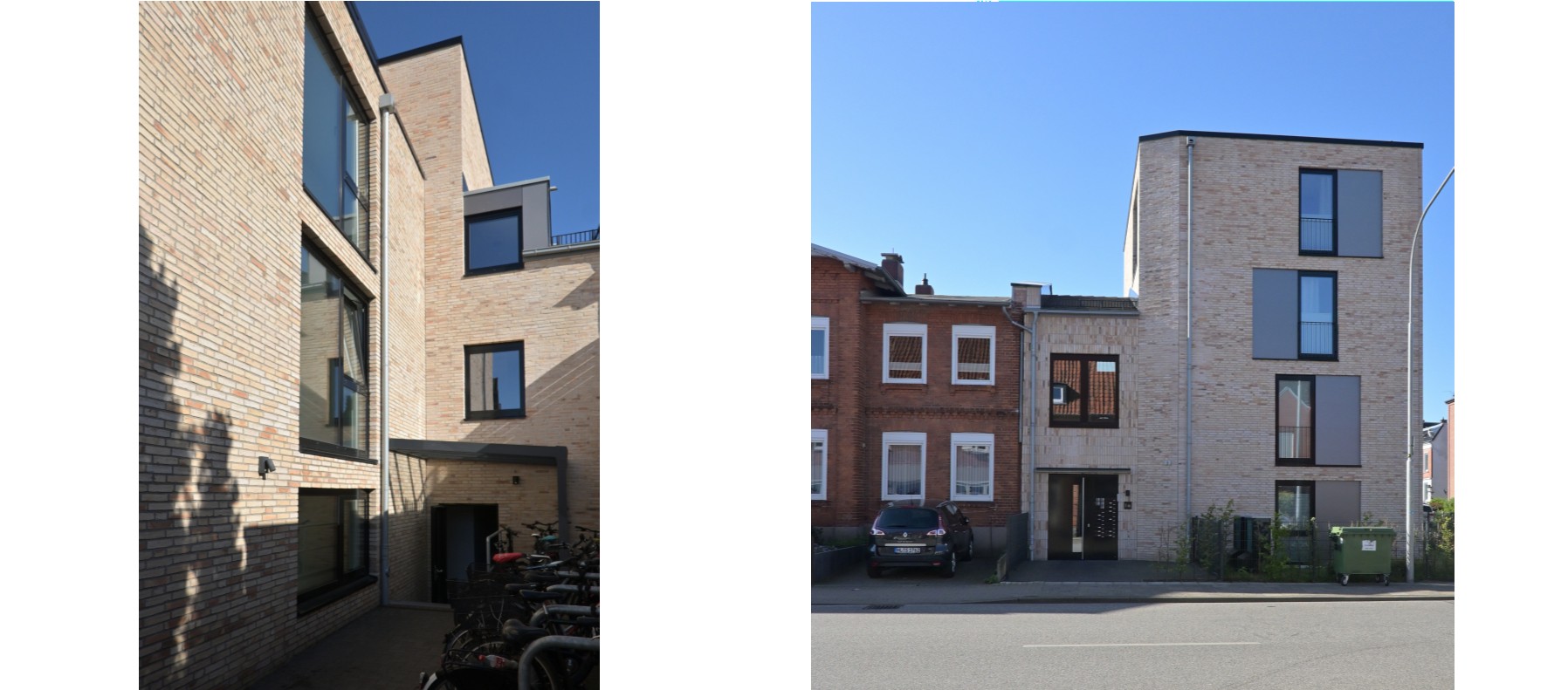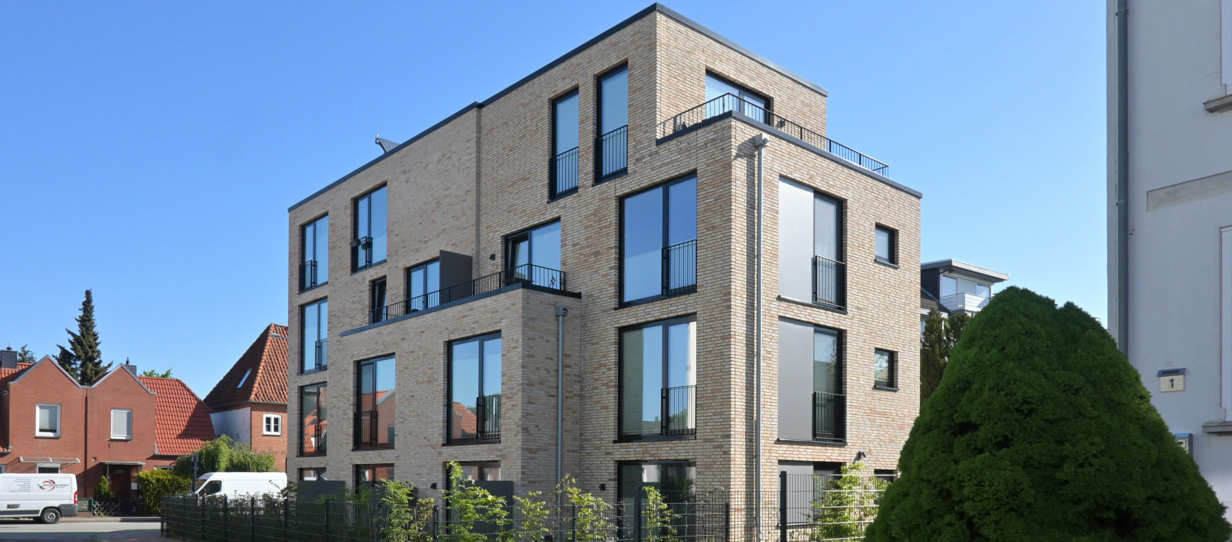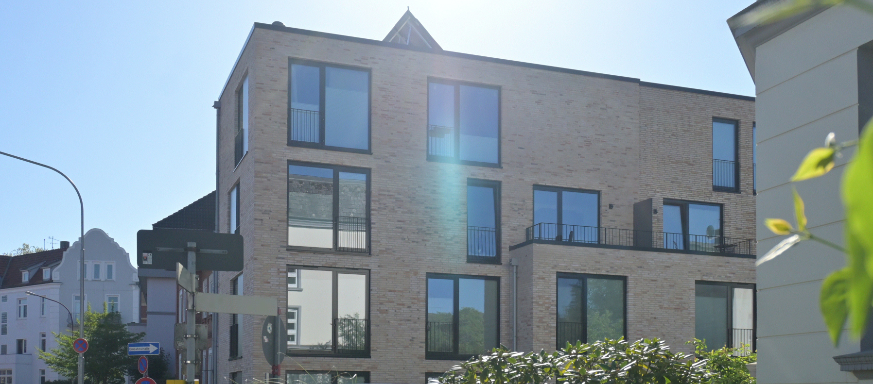 Das auf einem Eckgrundstück vorhandene, baufällige Wohngebäude wurde unter gleichzeitigem Verzicht auf das Grenzbebauungsrecht abgebrochen und damit die Grundlage für eine städtebaulich zukunftsorientierte Entwicklung geschaffen, die selbstverständlich auch zeitgemäße energetische Aspekte berücksichtigt.